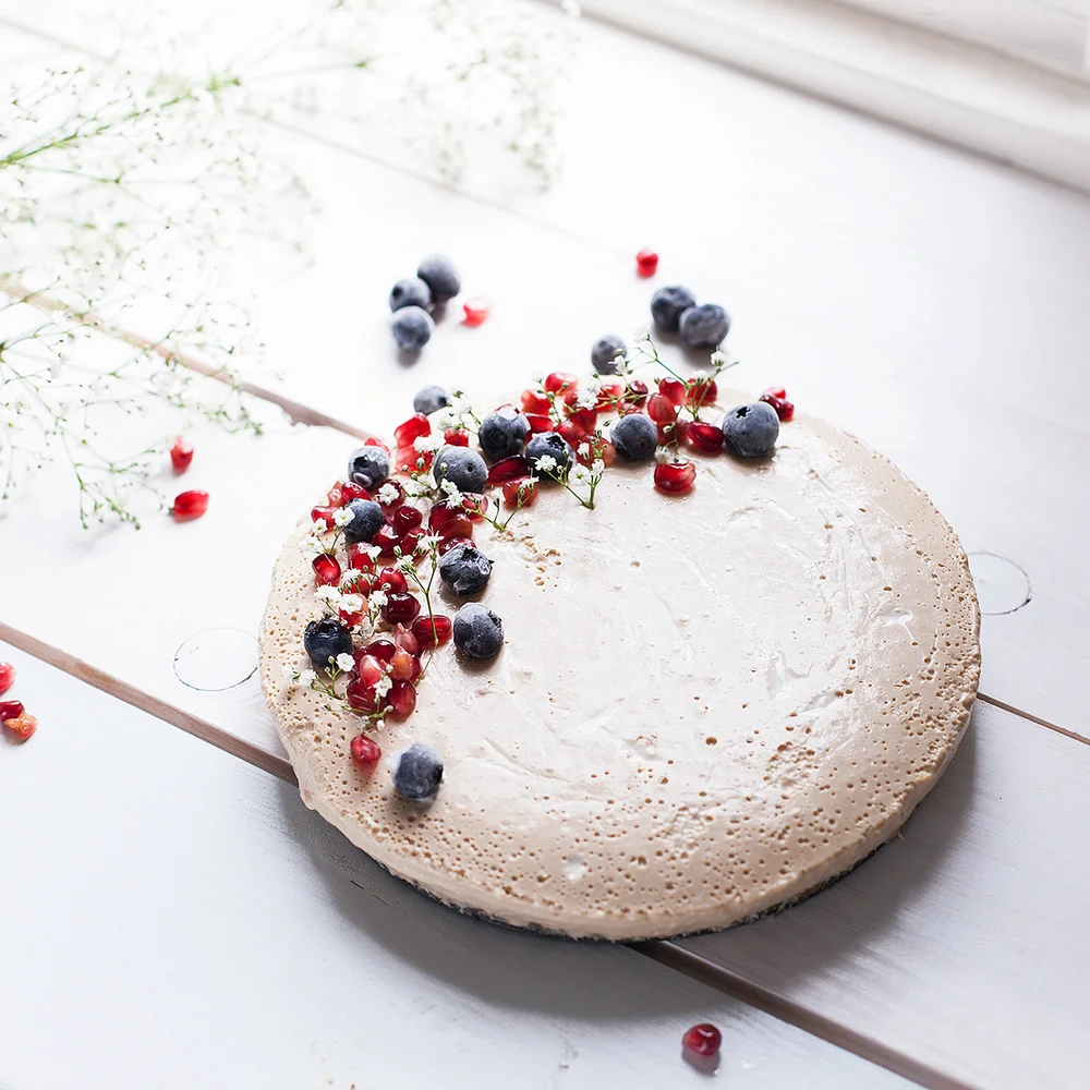 Fresh lemon cheesecake with frosted grapes from Delias Complete Cookery Course. Add the gelatine mixture. Pour over 100ml 3½ fl oz boiling water to dissolve.